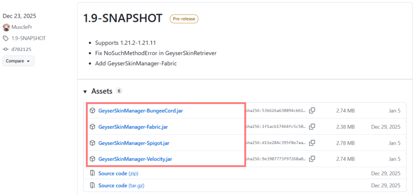 | サーバーバージョン | GeyserSkinManagerバージョン | ダウンロード先 |