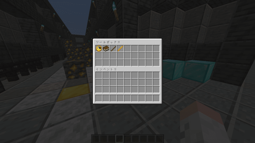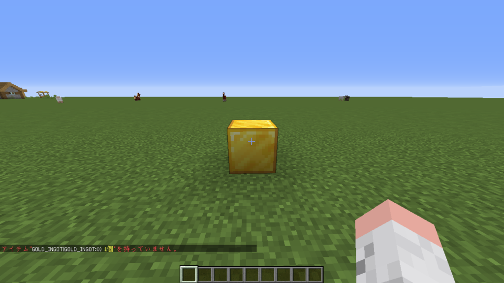 金インゴットを持たずに、対象ブロックをクリックすると必要なアイテムが表示され、金インゴットを手に持って、クリックすると金インゴットを消費して、ダイヤモンド5個が貰えます。