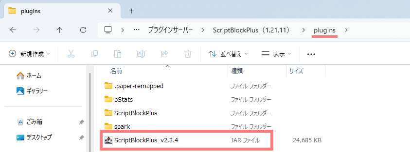 プラグインサーバーのpluginsにダウンロードしたプラグインを導入します。