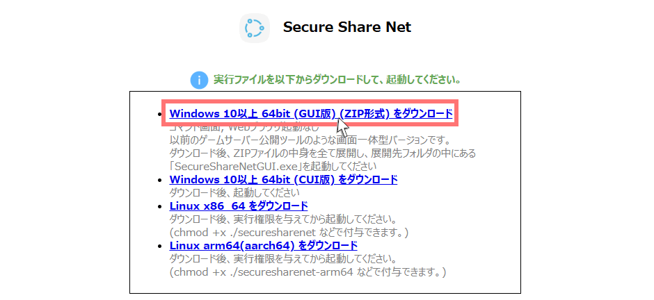 その中の「SecureShareNetGUI.exe」を使っていきます。