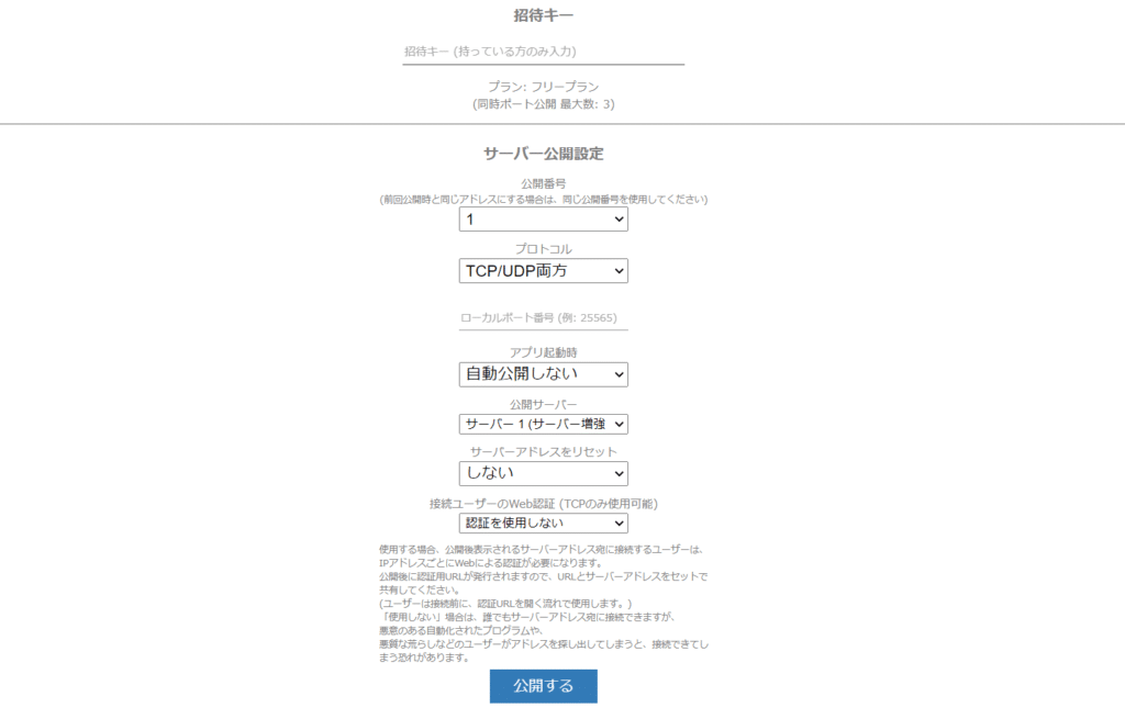 友人が、上記のサーバ公開ツールを使用してくれていますが、入れませんでした。