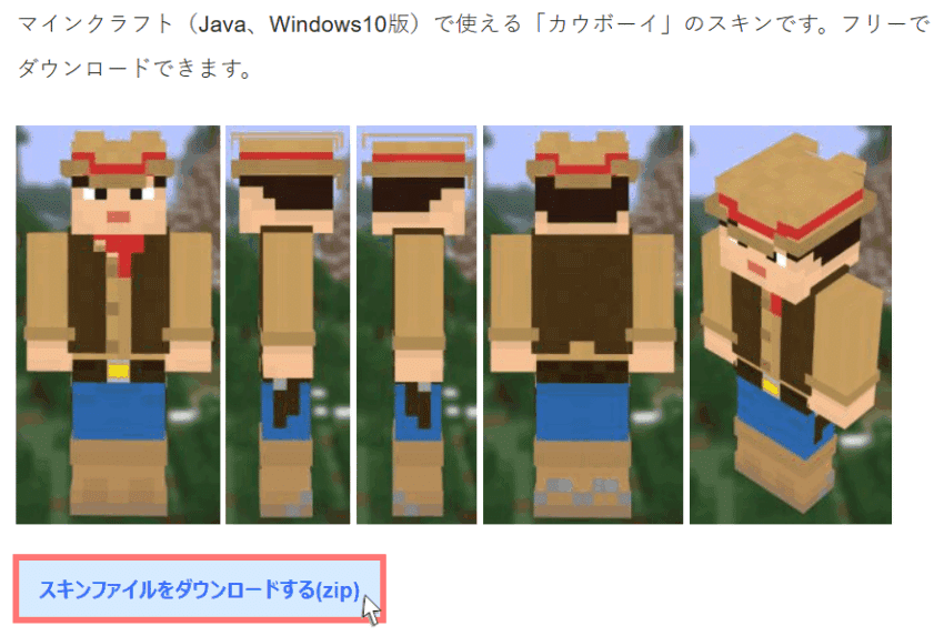 既に知っている方もいると思いますが、マインクラフトのスキンとは、ゲーム内のキャラクターの見た目のことを「スキン」と呼びます。