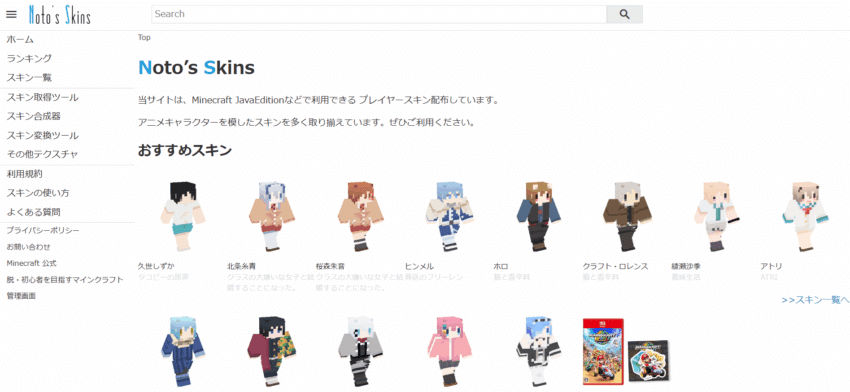 他にもスキン取得ツールやスキン合成、変換ツールなど様々なサービスがあります。ここでは詳しく説明しないので、気になる方はご覧ください。
